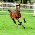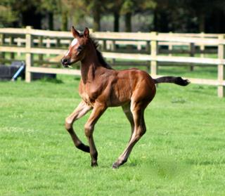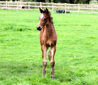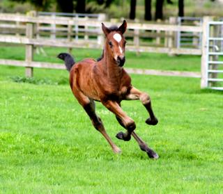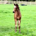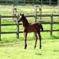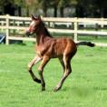 Quintessential is a very big moving athletic colt with a strong topline - especially his loin and croup which express sheer power. He has had the ability to sit since his first days and has such a balanced canter he has done clean changes since the age of three weeks. He is bold and curious.