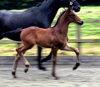 Sire Quantensprung finished his 30-day-performance test with 9.75 points for rideability in the test rider assessment, as well as with highest marks for the basic gaits and temperament. In 2014, Quantenprung won and placed in young horse classes, and in 2015 he qualified for the German National Young Horse Championships. He became best stallion and Bronze medalist at the World Championships of the Young Horses in Verden with a score of 8.9 points. At the Klosterhof's Autumnal Auction seven foals were sold for the average price of 19,000 Euros.